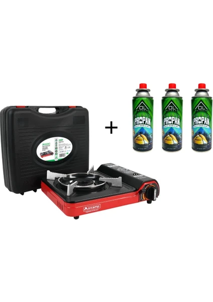 Orcamp Tekli Portatif Ocak – KIRMIZI +3 Adet OL Outdoor 227 gram Kartuş
